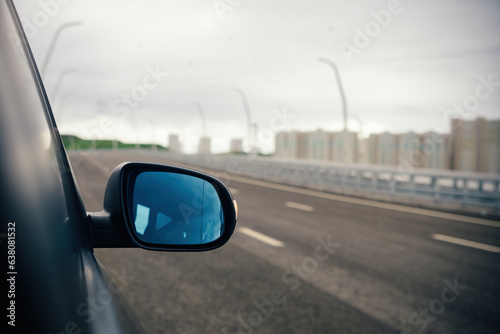 car, mirror, side, highway, traffic, drive, window, transport, automobile, travel, black, safety, vision, rear, modern, parking, wing, blurred, back, detail, bright, glasses, auto, vehicle, closeup, nobody, driving, looking, behind, right, road, view, way, asphalt, direction, journey, accessory, roadway, empty, landscape, transportation, sky, motion, street, speed, trip, backview