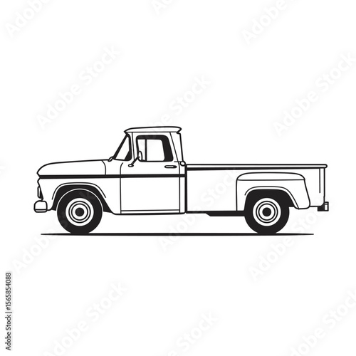 line art, black-and-white, half face, truck, car, auto, automobile, classic, vector
