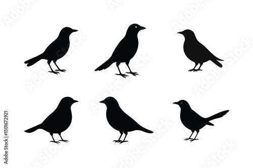 Blackbird silhouette bundle illustration, Blackbird silhouette vector