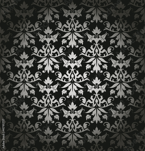 Black/Silver Seamless Flowers/Leafs Damask Pattern