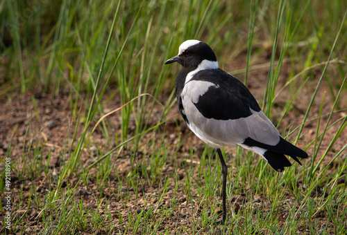 safari, game, reserve, travel, wild, wildlife, africa, south africa, african, bird, bird, lapwing, blacksmith, blank space, copy space, game reserve, grass, park, plover, racked, standing, tour tourism, nature, black, white, feather, feather