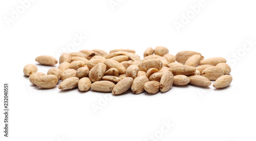 Blanched almonds, pile, isolated on white background