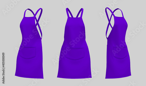 three-dimensional, rendering, apparel, apron, baker, blank, branding, butcher, chef, clean, clothes, clothing, colours, cook, cooking, cotton, design, fabric, fashion, front, illustration, isolated, job, kitchen, man, material, nobody, outfit, print, protection, protective, side, template, uniform, wear, work, men at work, view, mock-up, purple, violet, empty, lavandula