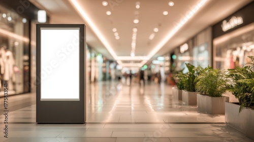 blank, advertising, billboard, display, modern, shopping, mall, marketing, promotion, retail, signage, empty, space, indoor, center, commercial, business, poster, template, store, shop, market, interior, background, urban, lifestyle, consumer, client, perspective, blurred, paseo, corridor, plant, design, mock, advertisement, frame, light, structure