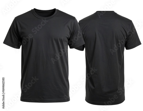 black, t-shirt, blank, front, back, apparel, clothing, fashion, design, template, unisex, casual attire, shirt, short sleeve, print, graphic, digital, photo, product, studio, isolated, white, simple, plain, model