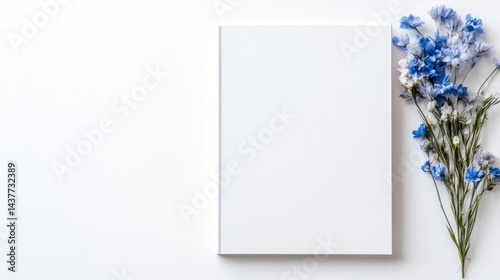 book, blank, white, flower, blue, decorative, floral, design, template, empty, presentation, digital, printable, photo, art, creative, modern, minimalist, simple, clean, stationary, bouquet, nature, still life, photo, decor, office, home, workspace, inspiration, idea, journal, notebook, paper, print, background, elegant, pretty, cute, stylish, composition, photographic, printing
