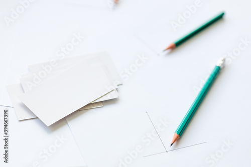 white, business, business card, crayons, blank, empty, paper, stationary, office, card, no people, line, drawing, vignetting, start, thought, defocused, blur, bokeh
