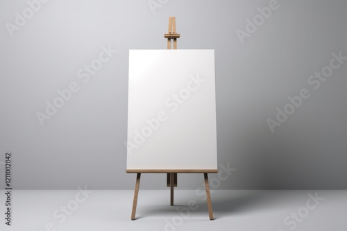 Blank Canvas on Natural Wood Easel with Minimalist Background