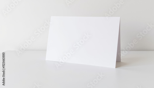 Blank card awaits creative expression in a minimalist setting with soft lighting and a clean backdrop