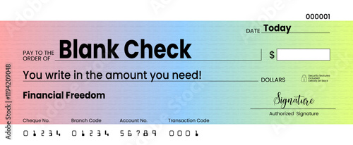 Blank check, bank cheque design, vector format