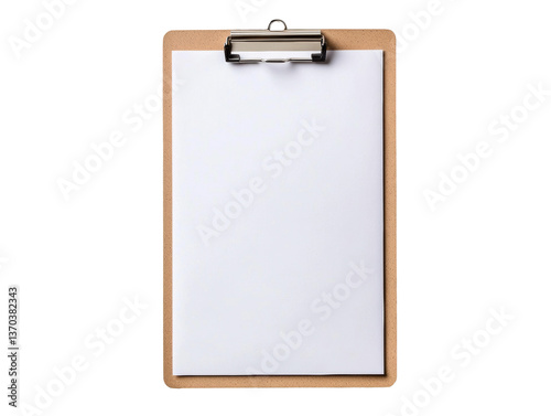 Blank clipboard with blank sheet for office or academic use on a transparent background, cut out