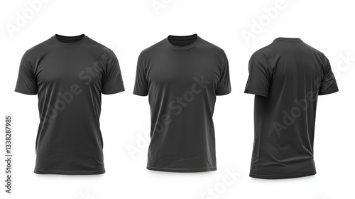 t-shirt, blank, grey, dark, shirt, apparel, design, template, fashion, clothing, print, tee, casual attire, unisex, summer, activewear, sporty, polyester, cotton, graphic, short sleeve, digital, illustration, product, presentation, realistic, three-dimensional, front, back, side, view, rendering