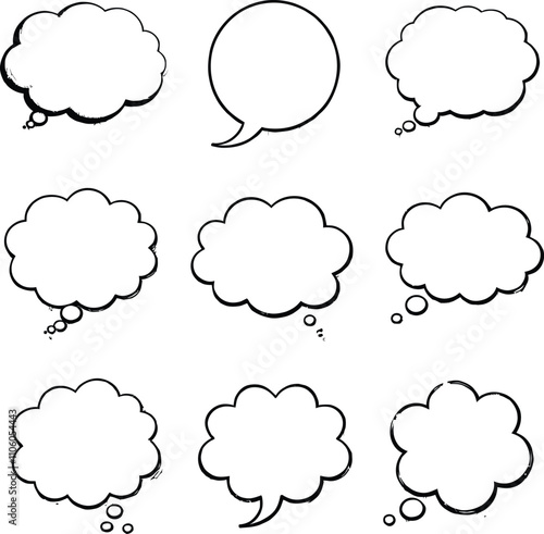 Blank empty speech and thought bubbles line art bundle vector illustration set