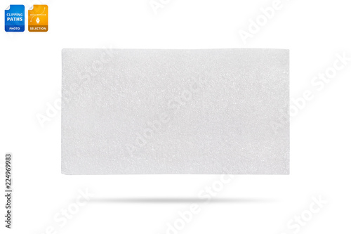 Blank foam board isolated on white background. Synthetic texture background. Detail of plastic material. Clipping paths object.
