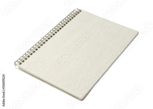 Blank off white spiral bound notebook isolated on transparent background