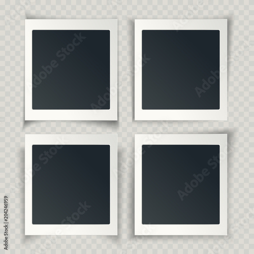 Blank photo frames with different shadows on the grunge transparent background, vector.