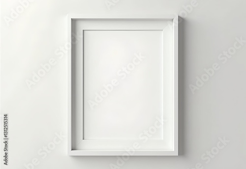 blank picture frame on a minimalistic wall, isolated on white background, modern simple white photo frame with copy space