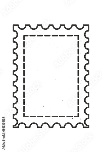 Blank postage stamp outline with scalloped edges and dashed border