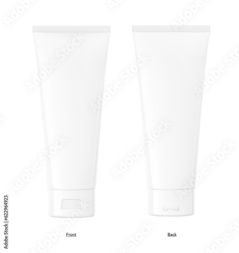 Blank realistic tube mockup. Front and back view. Vector illustration isolated on white background. Can be use for your design, advertising, promo and etc. EPS10.