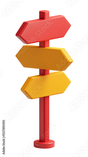 signpost, signs, directional, pointer, direction, arrow, guidance, travel, navigation, red, yellow, orange, colours, three-dimensional, render, blank, empty, template, illustration, graphic, design, symbol, icon, information, indicator, guide, path, route, journey, location, destination, choice, option, decision, three, sided, post, isolated, transparent, background, vector, element
