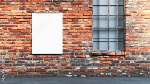 Blank Sign on Brick Wall with Window Industrial and Rustic Aesthetic
