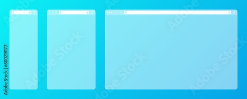Blank transparent web browser window with toolbar and search field on colorful background. Modern website, internet page. Browser mockup for computer, tablet and smartphone. Vector illustration