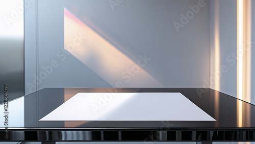 blank, white, paper, sheet, black, reflective, table, modern, minimalist, elegant, soft light, shadow, luxury, abstract, design, workspace, clean, empty, composition, simplicity, background, aesthetic, office, contemporary, artistic, professional, subtile, perspective, futuristic, glasses, surface, balance, stylish, high-end, branding, presentation, inspiration, monochrome, sleek, polished, geometric, corporate, interior