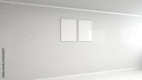 Blank white poster in white frame on the wall