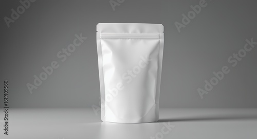 Blank White Stand-Up Pouch Packaging Mockup with Zipper Seal on Neutral Grey Background for Bra