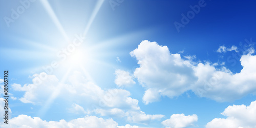 Błękitne niebo, obłoki i chmury. Tło panoramiczne do banerów, grafik. Rajska przestrzeń.