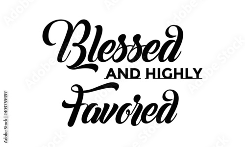 Blessed and Highly Favored, Christian faith, Typography for print or use as poster, card, flyer or T Shirt