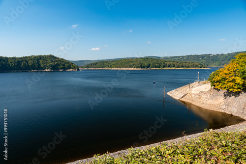 Blick auf den Rursee in der Eifel im Sommer bei schönem Wetter