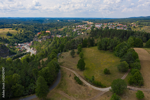 Blick von oben auf Pottenstein/Deutschland in der Fränkischen Schweiz