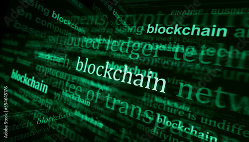 Blockchain headline titles media with 3d illustration