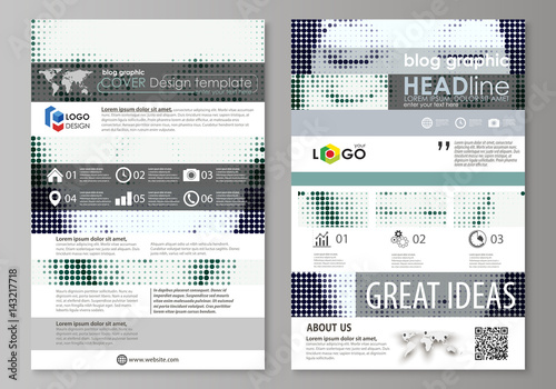 Blog graphic business templates. Page website design template, abstract vector layout. Halftone dotted background, retro style grungy pattern, vintage texture. Halftone effect with black dots on white
