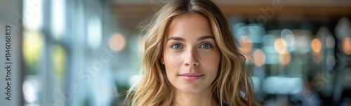 blond, woman, blue eye, looking, camera, eatery, portrait, banner, copy space, attractive, smiling, elegant, stylish, fashionable, confident, indoor, posing, european, beauty, caucasian, adult, young, closeup, head shot, happy, cheerful, casual attire, lifestyle, natural, charming, friendly, lovely, appealing, stunning, glamourous, modern, trendy, relaxed, posh