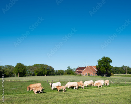 blonde d'aquitaine cows in rural landscape of twente near enschede and oldenzaal in holland