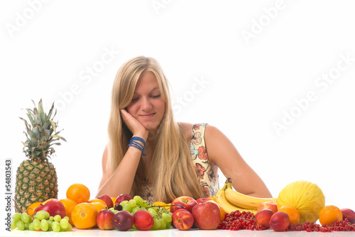 woman, pensive, fruit, fruit, enjoyment, calorie, enjoy, vitality, vigorous, take off, diet, vegetarian, fruity, food, aliment, health food, blond, blond, pretty, attractive, people, person, girl, fruit, fun, happy, feel good