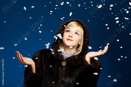 blonde girl in furs