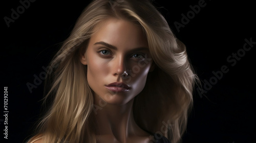 portrait, woman, model, fashion, blond, skin, lip, make-up, hair, luxury, glamour, elegance, look, beauty, face, eye, make-up, long, person, studio, coiffure, lady, sensuality