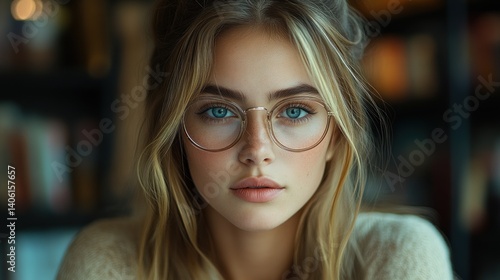 Blonde Woman with Glasses A CloseUp Portrait of Style and Elegance