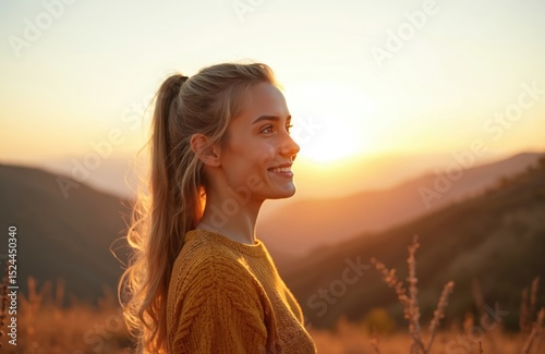 portrait, sunset, girl, woman, young, female, happy, beautiful, attractive, caucasian, summer, nature, beauty, smiling, sunlight, person, landscape, sky, enjoying, happiness, leisure, sunny, joy, face, cheerful, vacation, smile, lifestyle, mountain, travel, holiday, golden hour, mountain, golden light, bliss, serene, peace, peaceful, outdoors, scenic, view, light, natural light, hair, blond, long hair, profile, half face, warm
