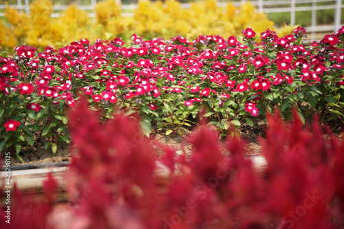 blooming flower decorating in flowerpot in garden