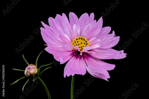 background, nature, plant, flower, colourful, beautiful, leaf, bloom, floral, blossom, joy, colours, decorative, flora, garden, flower head, closeup, botany, flowering plant, freshness, studio shot, pink, black, isolated, cosmos
