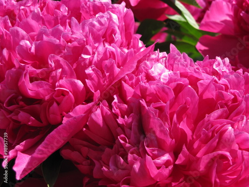 Blooming pink peony flowers
