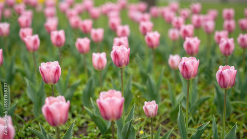 Blooming pink tulips in a botanical garden nature photography spring season vibrant colors close-up view