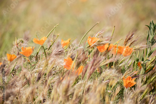 Blooming poppy flowers in springtime in California
