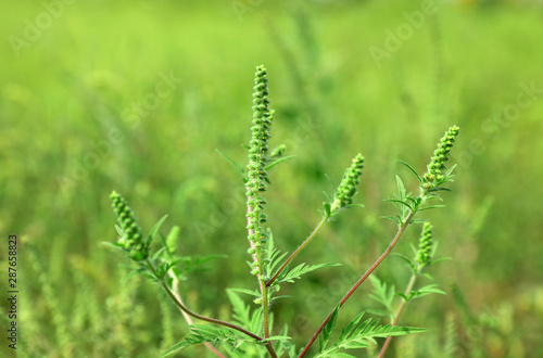 Blooming ragweed plant (Ambrosia genus) outdoors on sunny day. Seasonal allergy