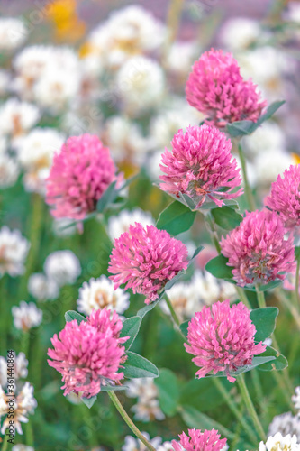 Blooming red and white clover