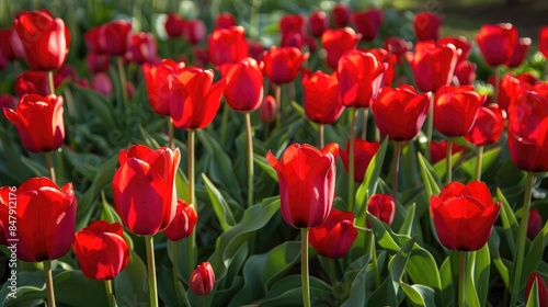 spring, garden, green, card, japan, wallpaper, cute, plant, beautiful, tulip, cultivation, stamen, blossom, bloom, background material, bright red, copy space, flowerbed, flower field, full bloom, green leaf, no one, no people, postcard, red flower, red tulip, spring flower, up, high-coloured